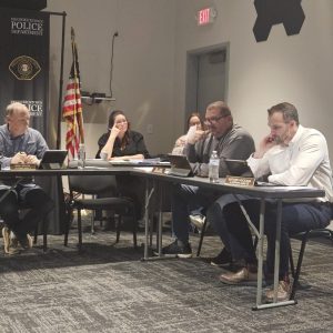 The Fredericktown fire department and police volunteered two representatives each to shoot bows at a styrofoam wolf. They were allowed one practice shot and one real shot, with guidance from Seth Firebaugh, who used to work at Cedar Falls. They used a small, “Ballista Bat reverse mini crossbow,” from 20 yards away, and then a TenPoint crossbow from a table at 50 yards, which shoots over 400 feet per second, Nash said.